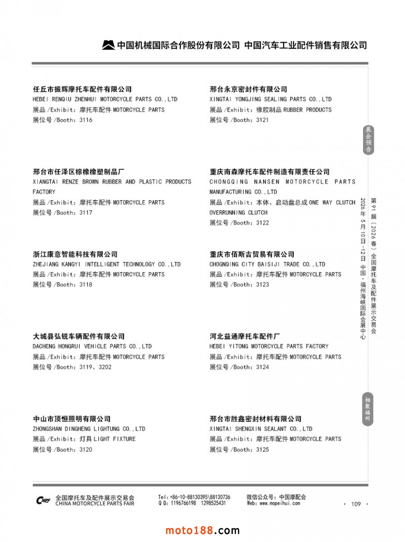 内109 第90届(2025秋)全国摩托车及配件展示交易会-广州站参展企业信息
