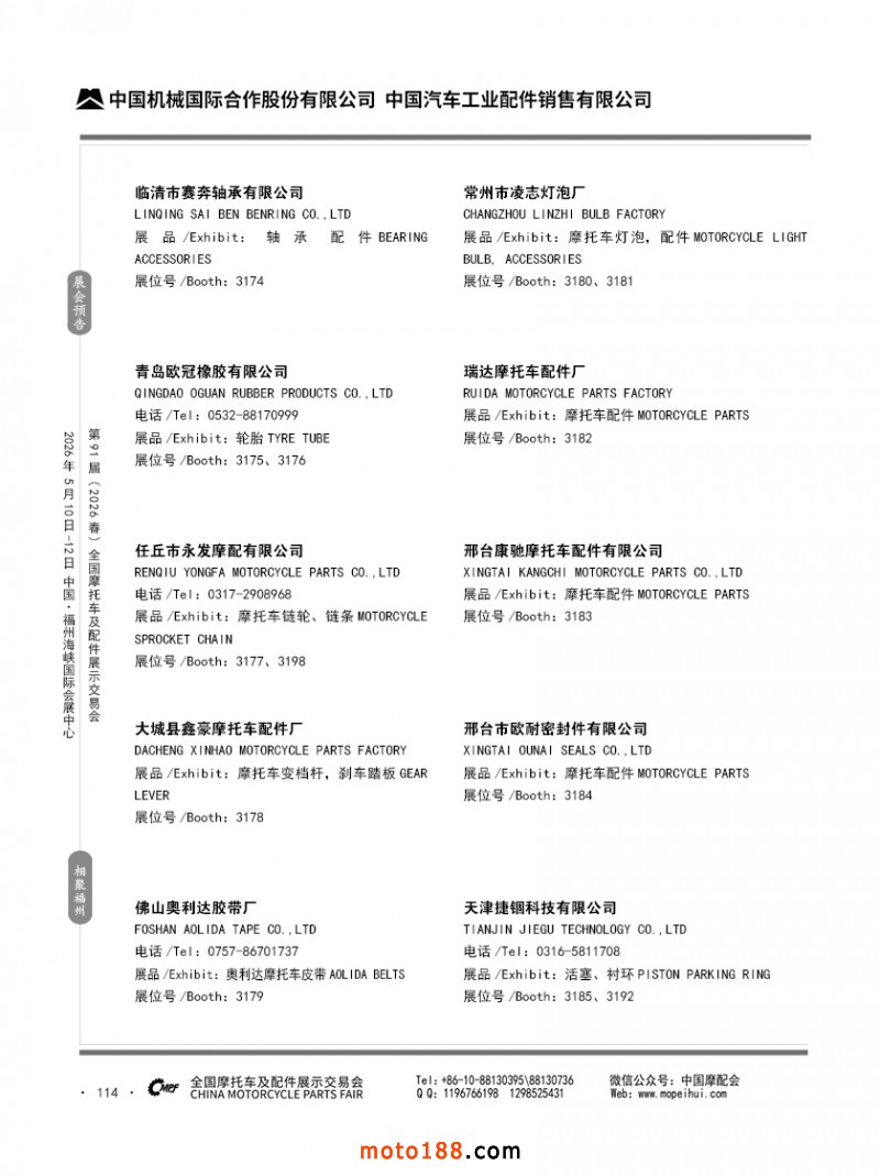 内114 第90届(2025秋)全国摩托车及配件展示交易会-广州站参展企业信息