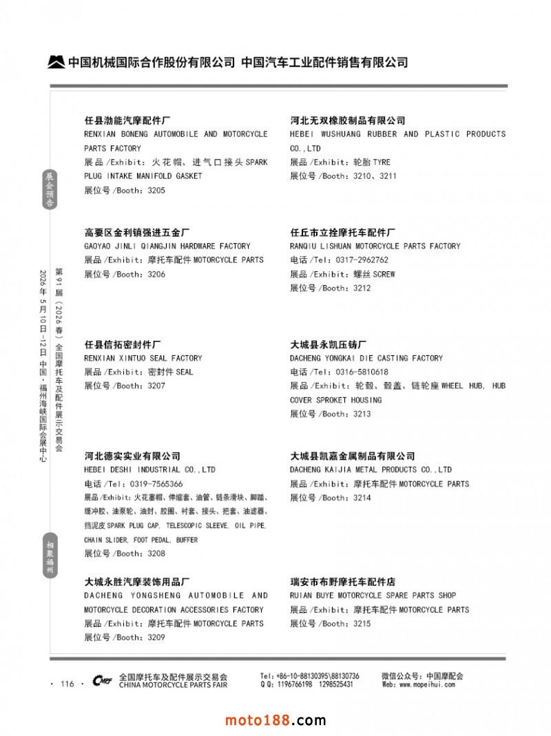 内116 第90届(2025秋)全国摩托车及配件展示交易会-广州站参展企业信息
