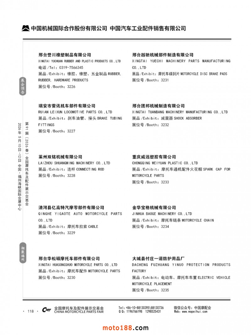 内118 第90届(2025秋)全国摩托车及配件展示交易会-广州站参展企业信息