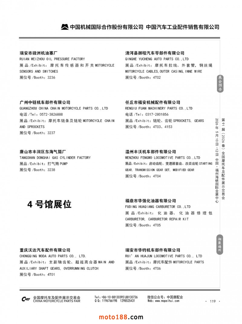 内119 第90届(2025秋)全国摩托车及配件展示交易会-广州站参展企业信息