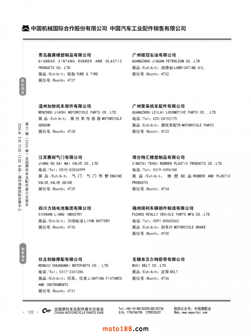 内122 第90届(2025秋)全国摩托车及配件展示交易会-广州站参展企业信息