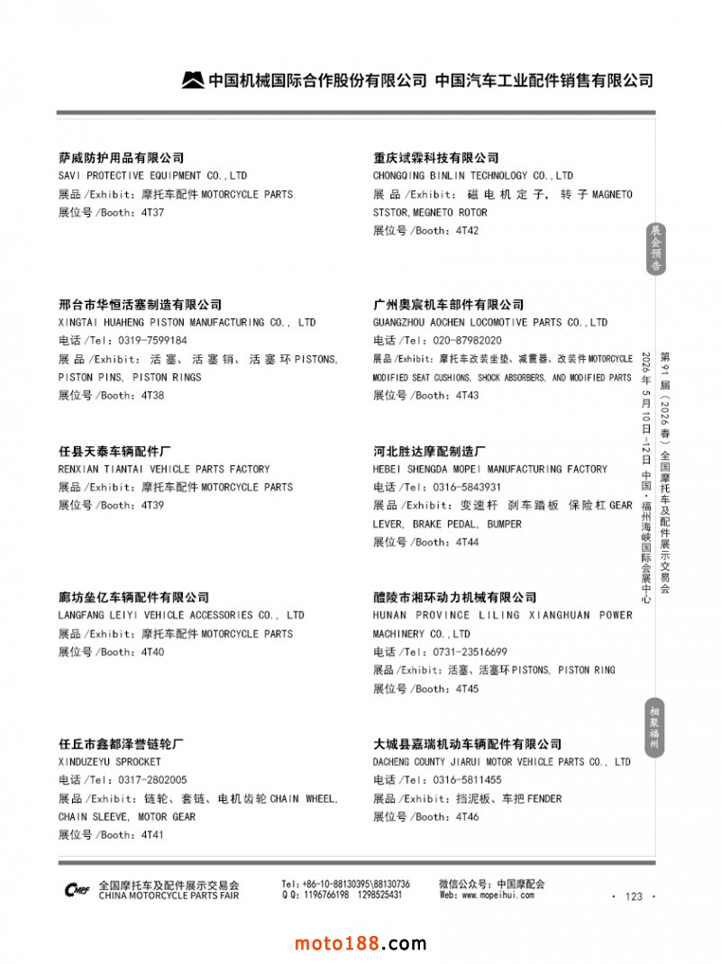 内123 第90届(2025秋)全国摩托车及配件展示交易会-广州站参展企业信息