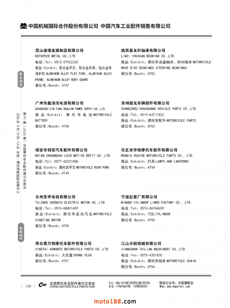 内124 第90届(2025秋)全国摩托车及配件展示交易会-广州站参展企业信息