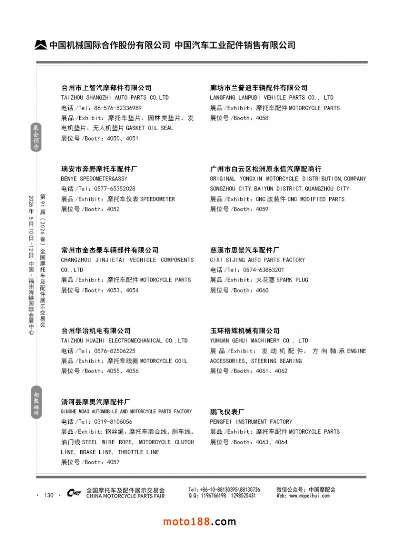 内130 第90届(2025秋)全国摩托车及配件展示交易会-广州站参展企业信息