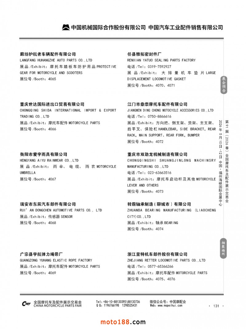 内131 第90届(2025秋)全国摩托车及配件展示交易会-广州站参展企业信息