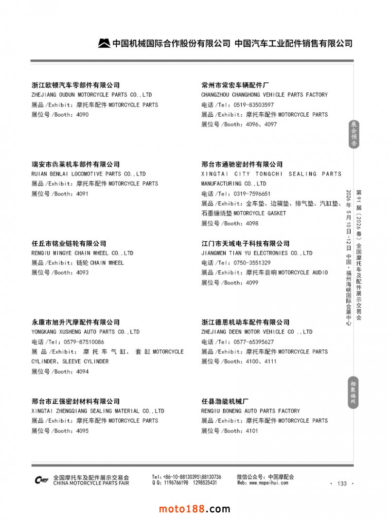 内133 第90届(2025秋)全国摩托车及配件展示交易会-广州站参展企业信息