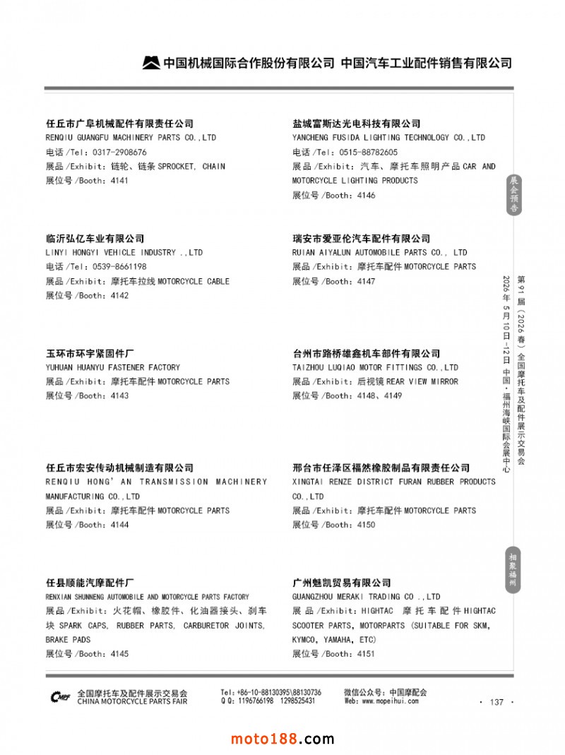 内137 第90届(2025秋)全国摩托车及配件展示交易会-广州站参展企业信息