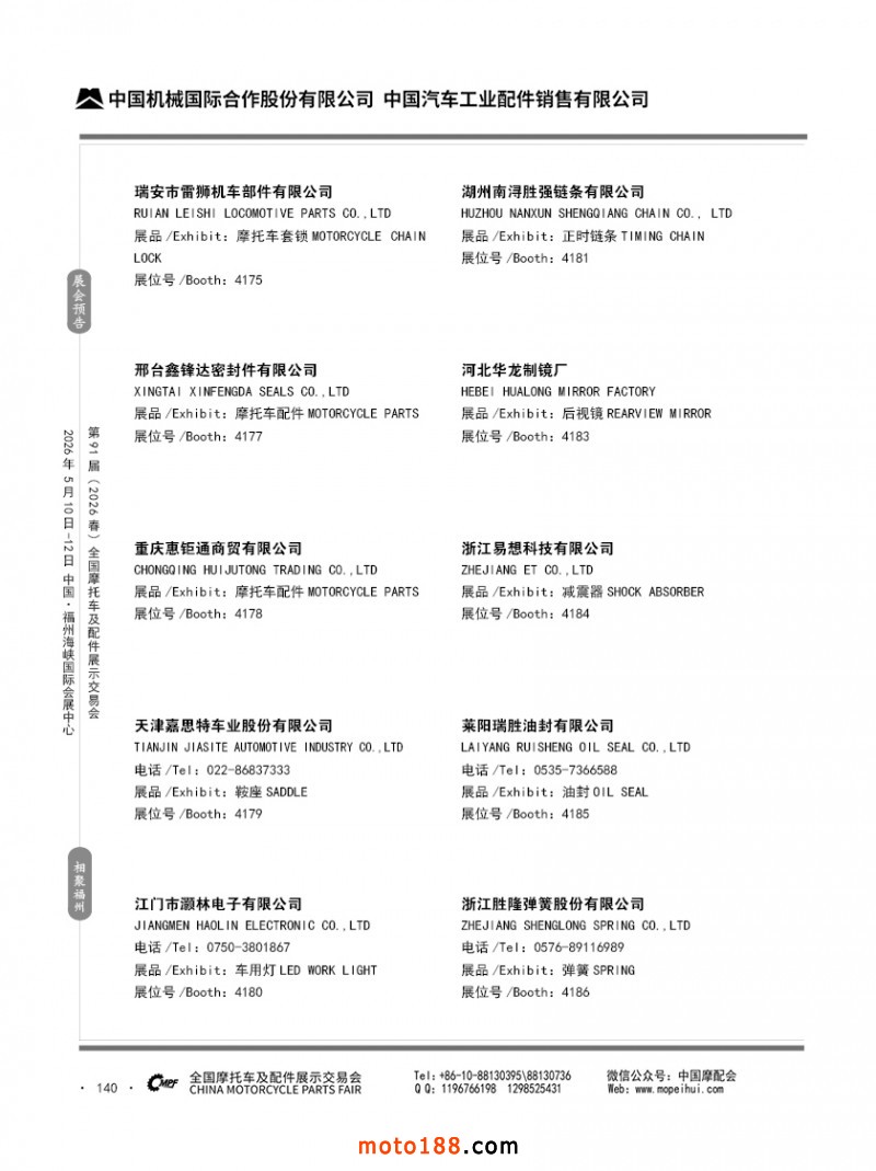 内140 第90届(2025秋)全国摩托车及配件展示交易会-广州站参展企业信息