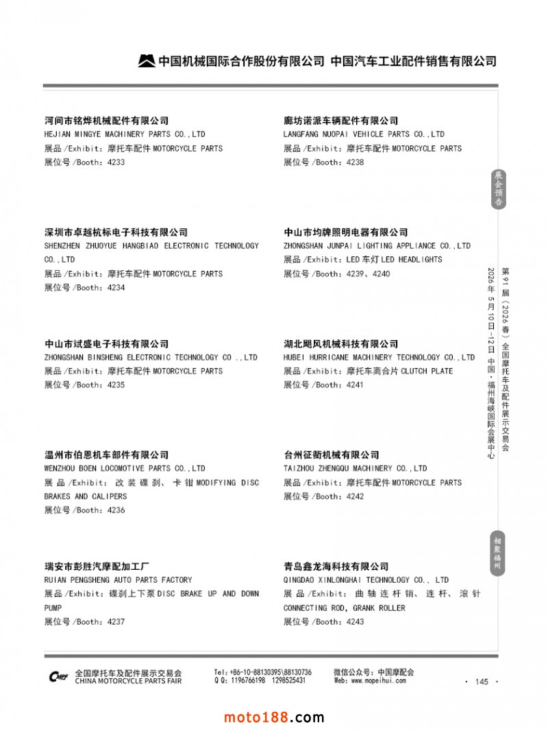 内145 第90届(2025秋)全国摩托车及配件展示交易会-广州站参展企业信息