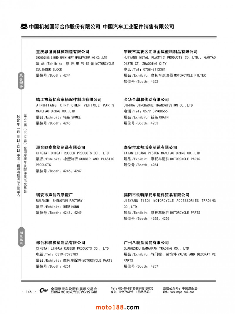 内146 第90届(2025秋)全国摩托车及配件展示交易会-广州站参展企业信息