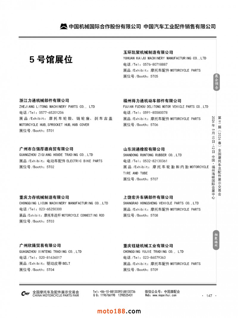 内147 第90届(2025秋)全国摩托车及配件展示交易会-广州站参展企业信息
