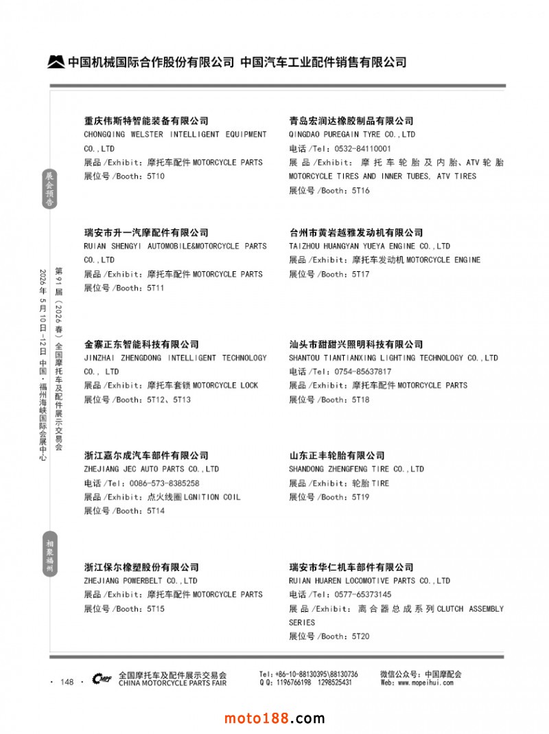 内148 第90届(2025秋)全国摩托车及配件展示交易会-广州站参展企业信息