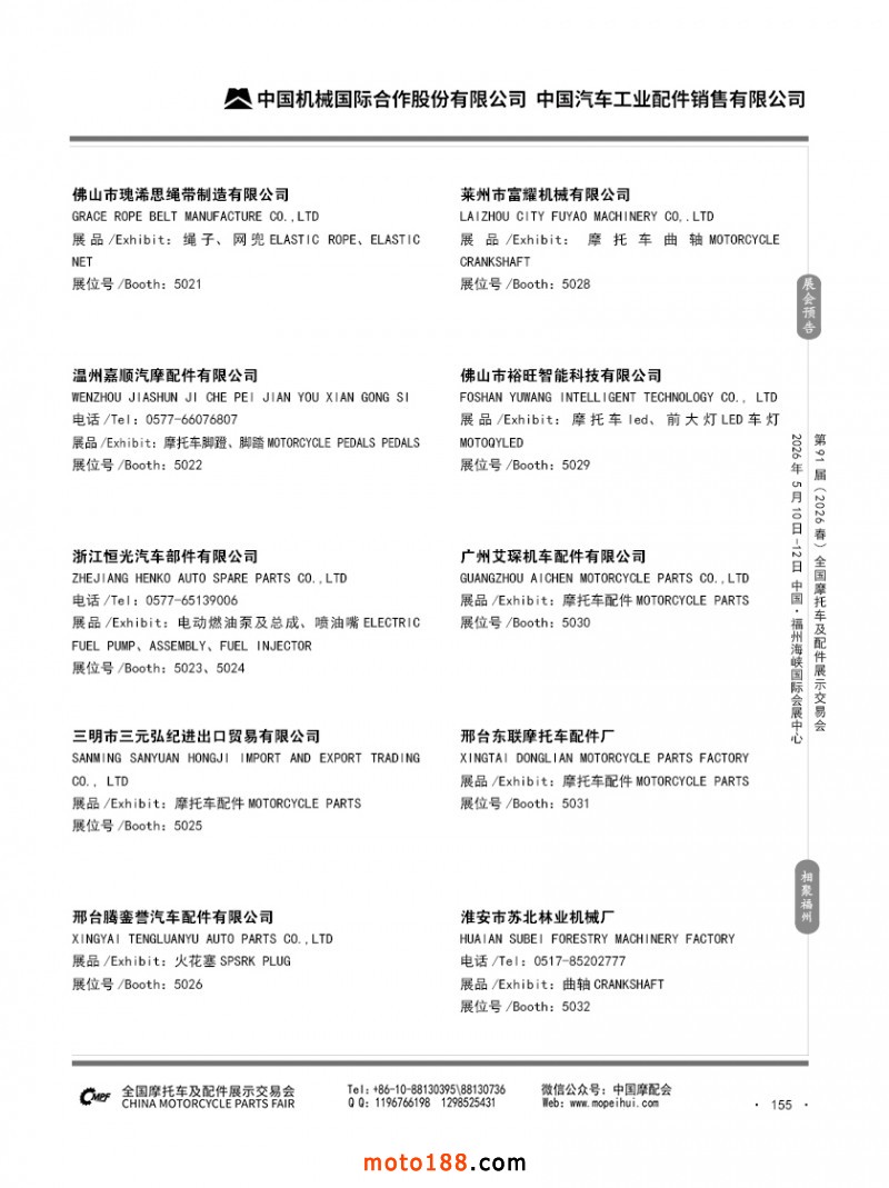 内155 第90届(2025秋)全国摩托车及配件展示交易会-广州站参展企业信息