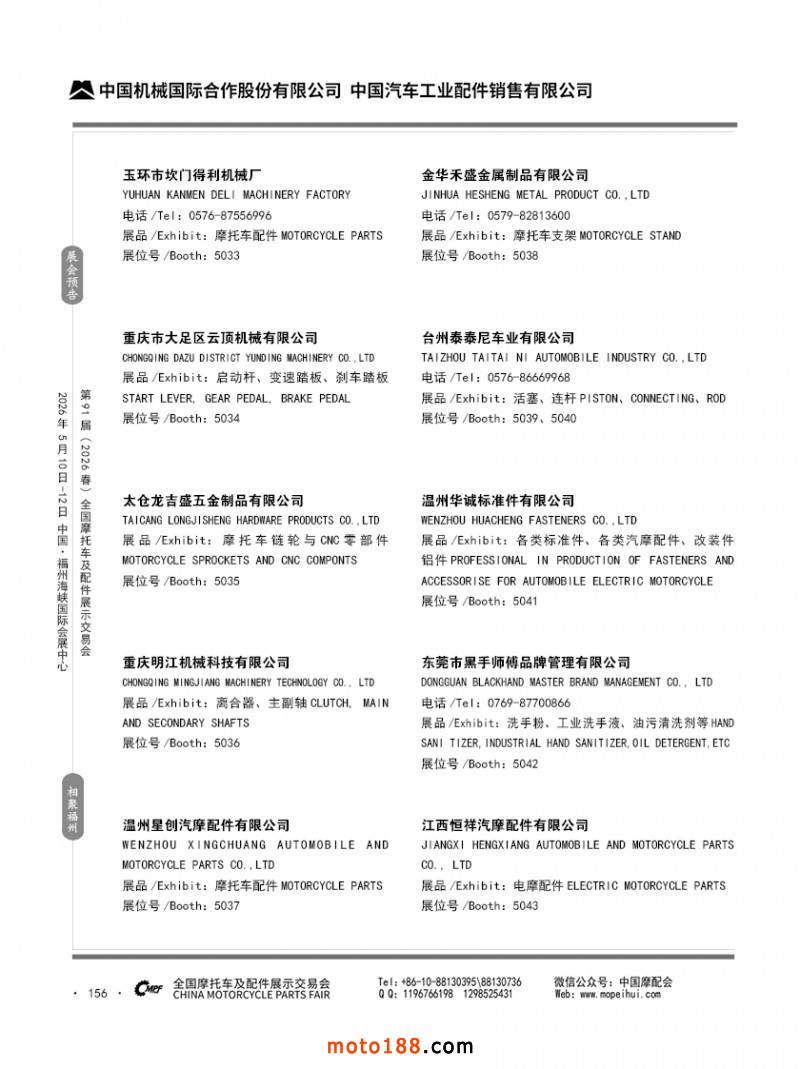 内156 第90届(2025秋)全国摩托车及配件展示交易会-广州站参展企业信息