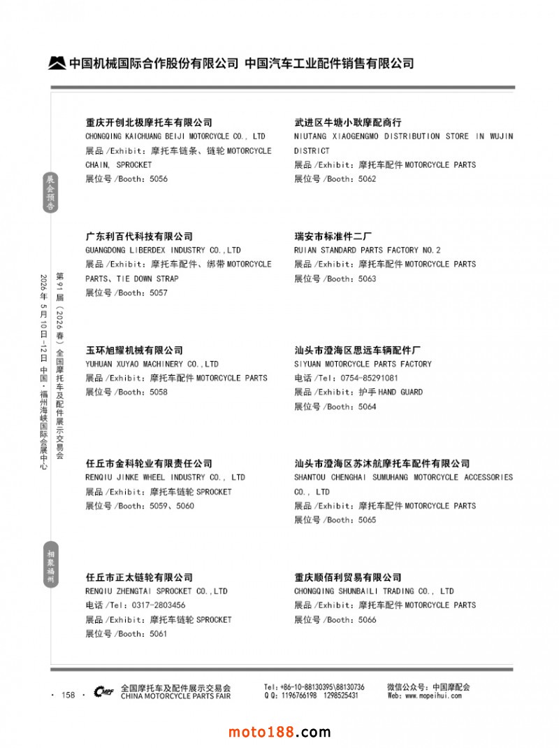 内158 第90届(2025秋)全国摩托车及配件展示交易会-广州站参展企业信息