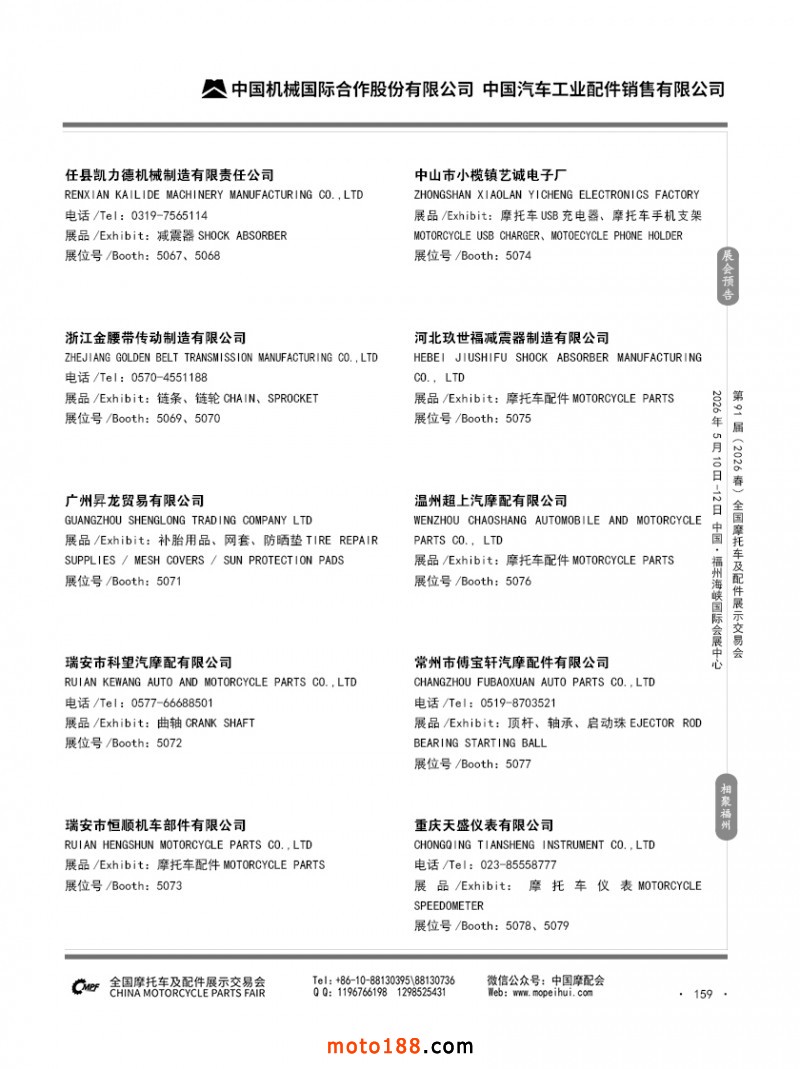 内159 第90届(2025秋)全国摩托车及配件展示交易会-广州站参展企业信息
