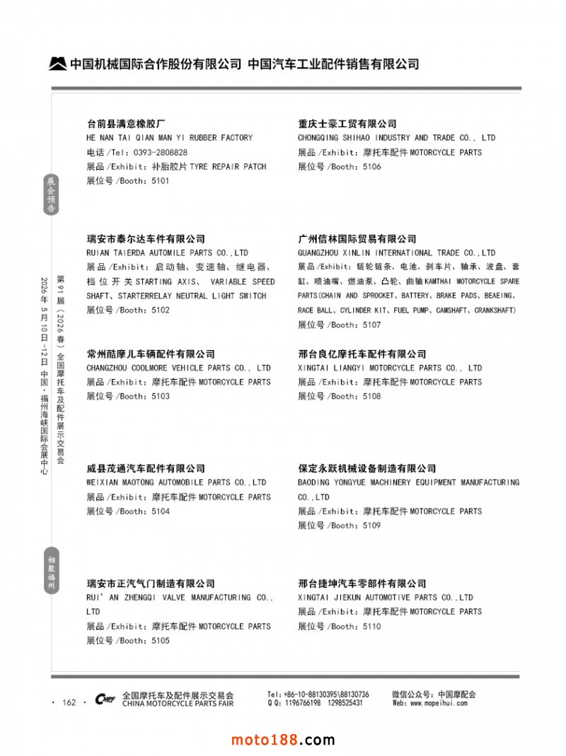 内162 第90届(2025秋)全国摩托车及配件展示交易会-广州站参展企业信息