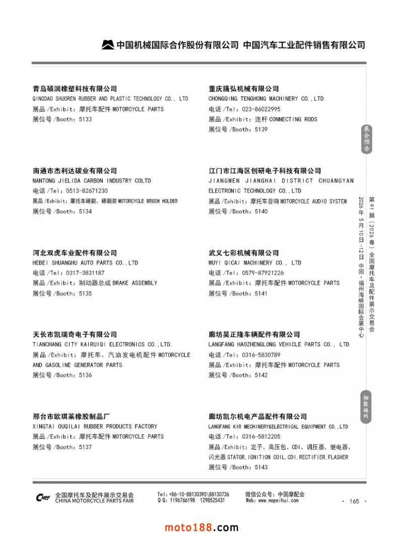 内165 第90届(2025秋)全国摩托车及配件展示交易会-广州站参展企业信息