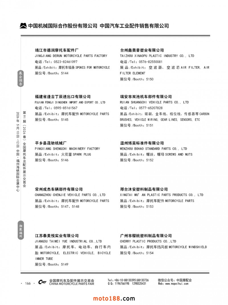 内166 第90届(2025秋)全国摩托车及配件展示交易会-广州站参展企业信息