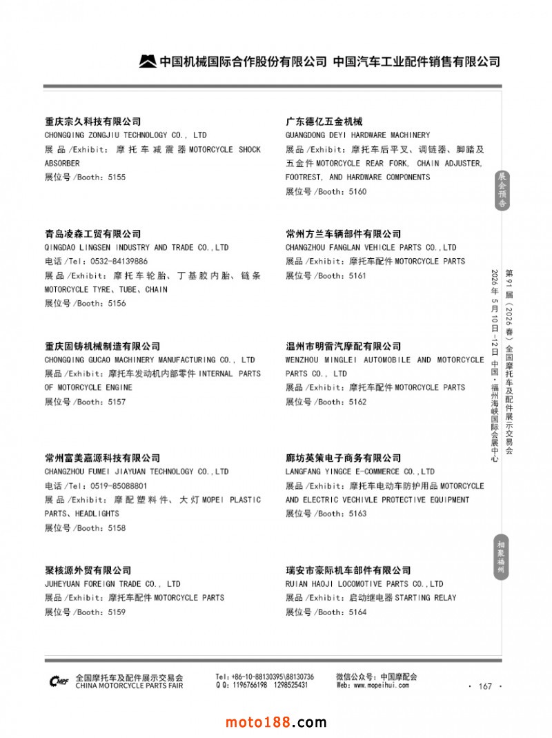 内167 第90届(2025秋)全国摩托车及配件展示交易会-广州站参展企业信息