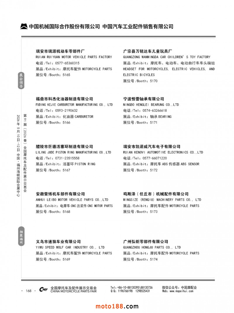 内168 第90届(2025秋)全国摩托车及配件展示交易会-广州站参展企业信息