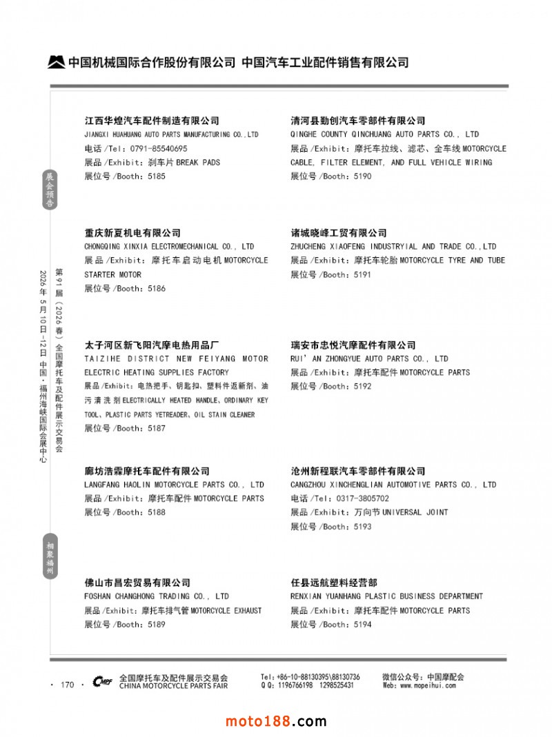 内170 第90届(2025秋)全国摩托车及配件展示交易会-广州站参展企业信息