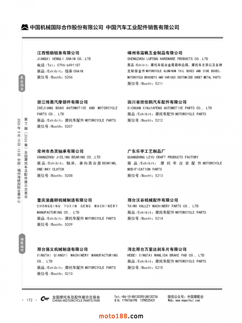 内172 第90届(2025秋)全国摩托车及配件展示交易会-广州站参展企业信息