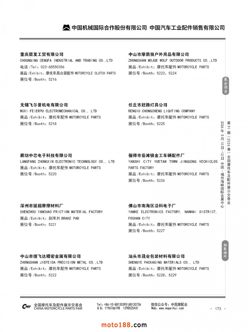 内173 第90届(2025秋)全国摩托车及配件展示交易会-广州站参展企业信息