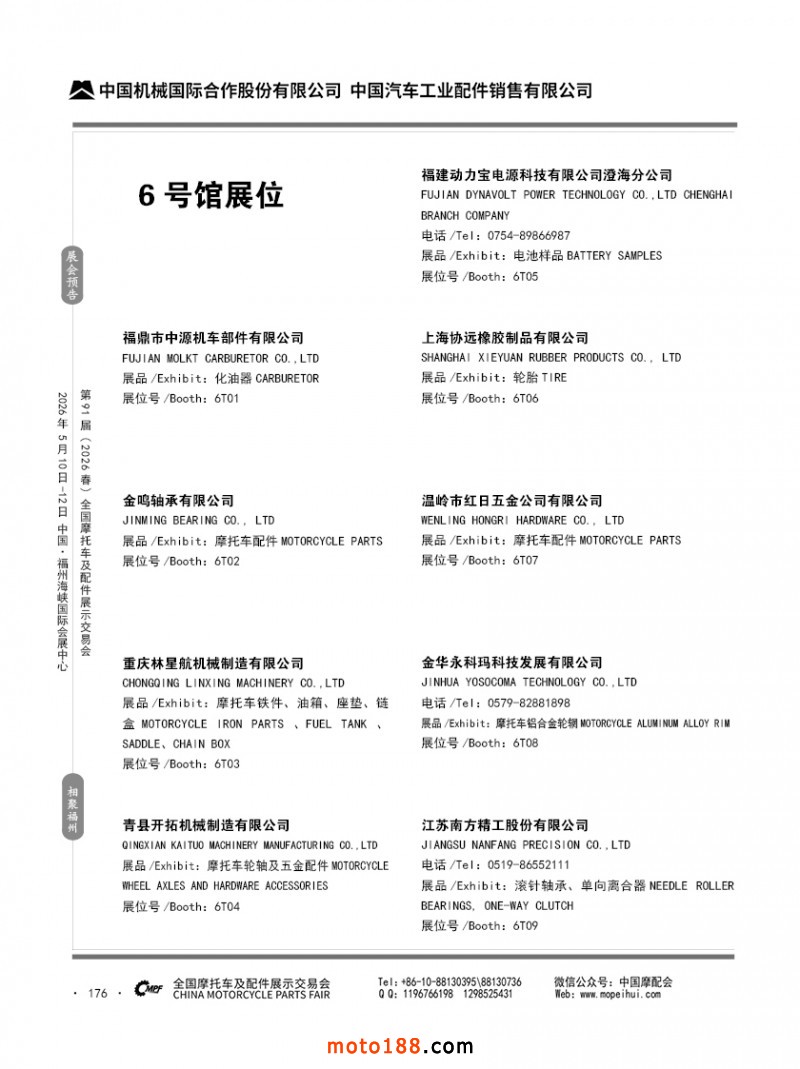内176 第90届(2025秋)全国摩托车及配件展示交易会-广州站参展企业信息