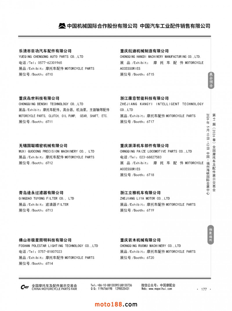 内177 第90届(2025秋)全国摩托车及配件展示交易会-广州站参展企业信息