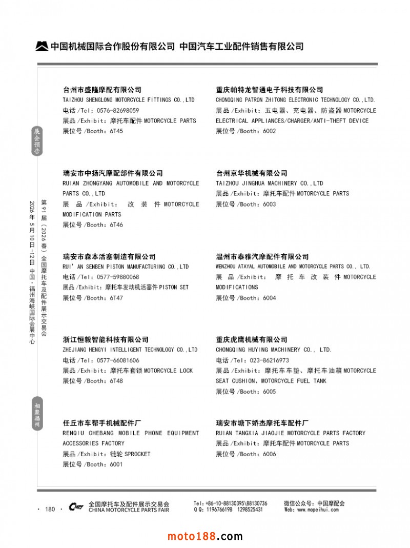 内180 第90届(2025秋)全国摩托车及配件展示交易会-广州站参展企业信息