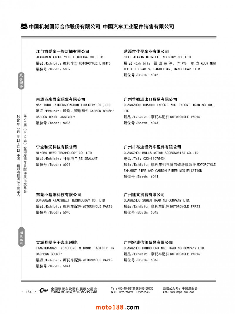 内184 第90届(2025秋)全国摩托车及配件展示交易会-广州站参展企业信息