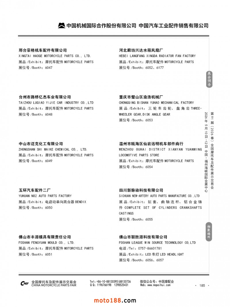 内185 第90届(2025秋)全国摩托车及配件展示交易会-广州站参展企业信息