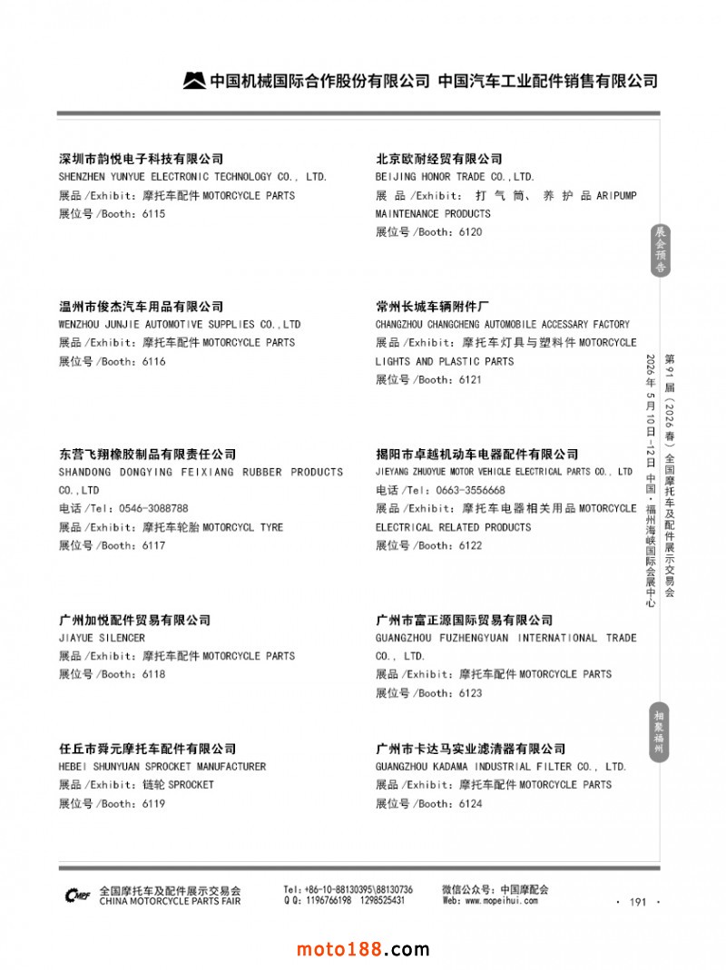 内191 第90届(2025秋)全国摩托车及配件展示交易会-广州站参展企业信息