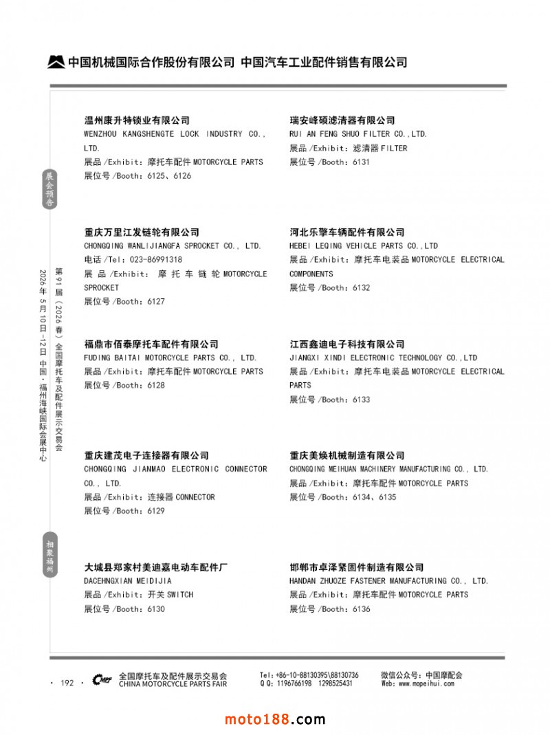内192 第90届(2025秋)全国摩托车及配件展示交易会-广州站参展企业信息