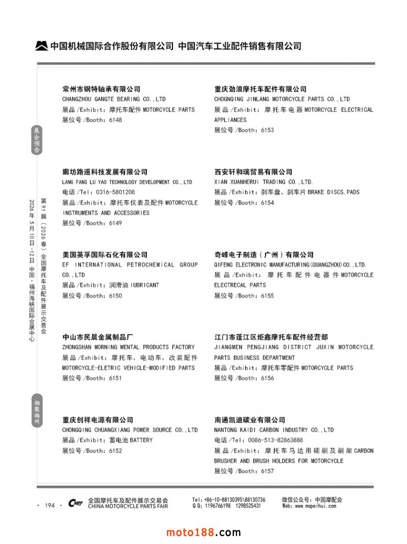 内194 第90届(2025秋)全国摩托车及配件展示交易会-广州站参展企业信息
