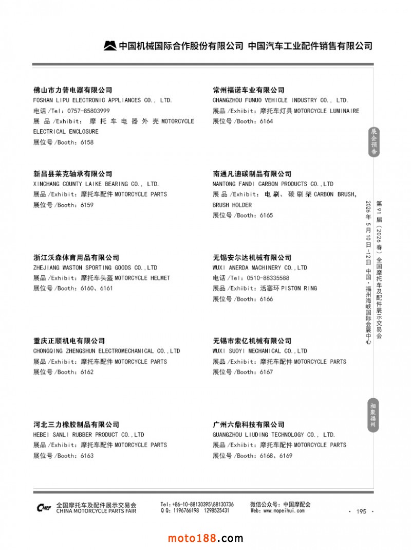 内195 第90届(2025秋)全国摩托车及配件展示交易会-广州站参展企业信息
