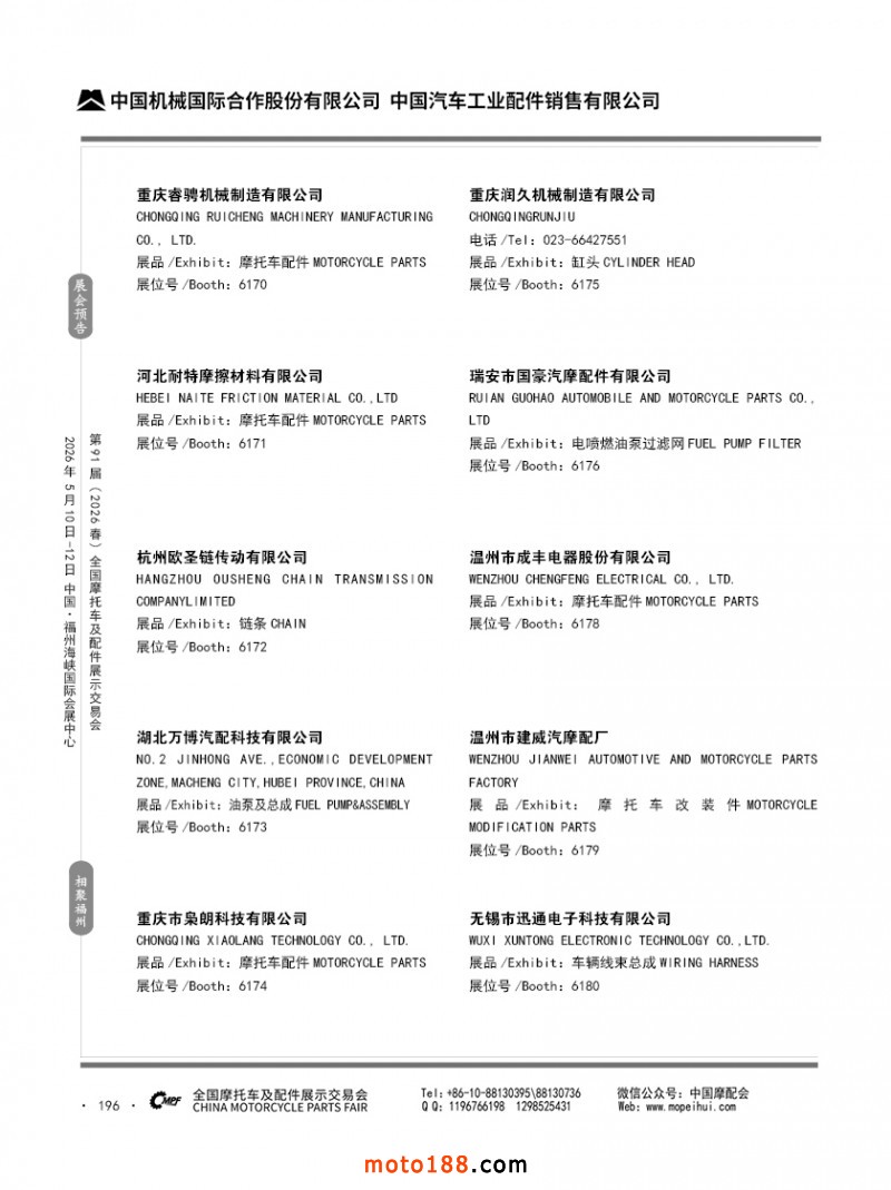 内196 第90届(2025秋)全国摩托车及配件展示交易会-广州站参展企业信息