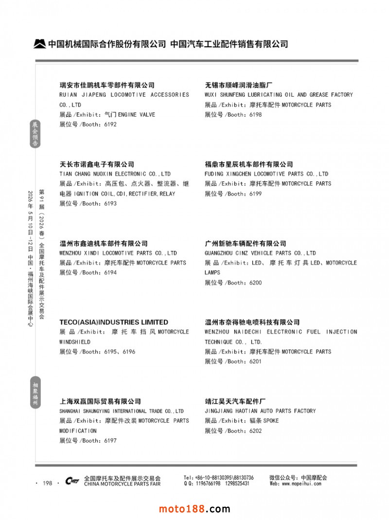 内198 第90届(2025秋)全国摩托车及配件展示交易会-广州站参展企业信息