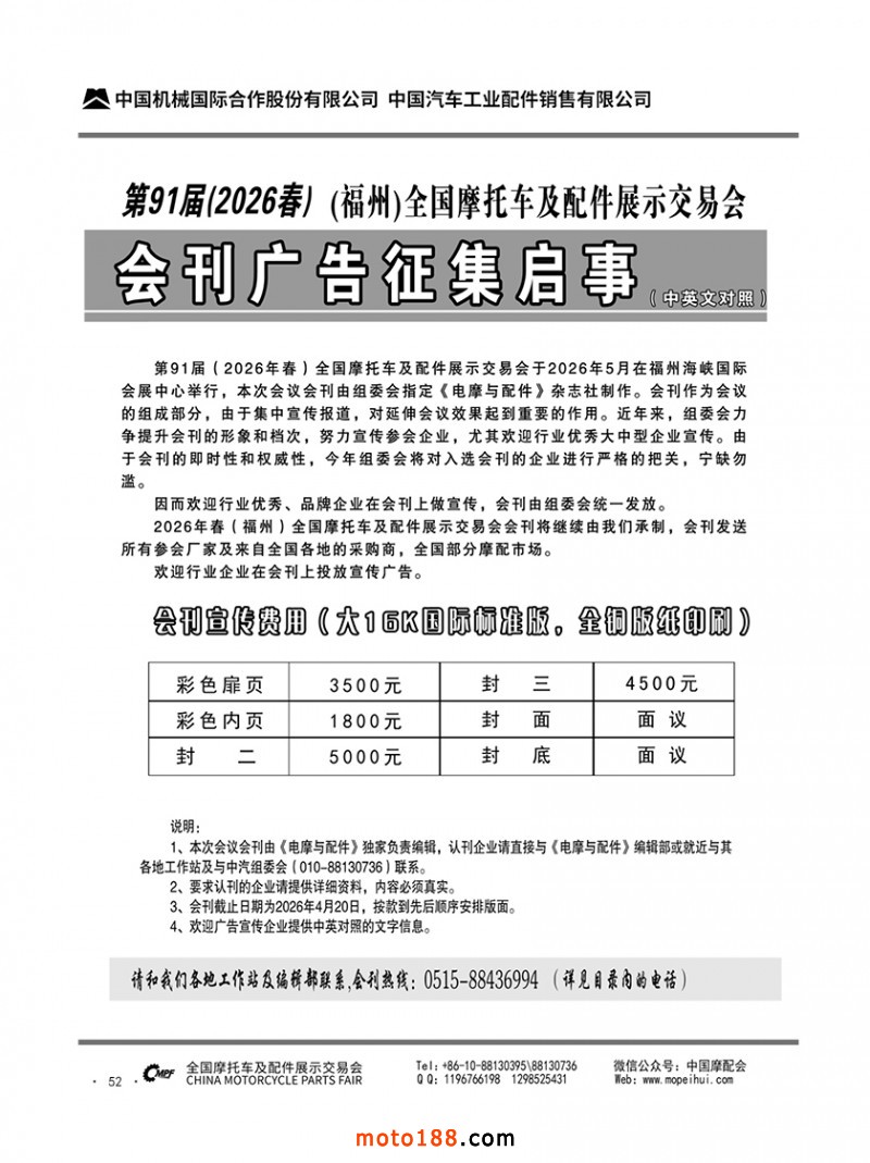 内52 第91届(2026春)全国摩托车及配件展示交易会-福州站会刊征集启事