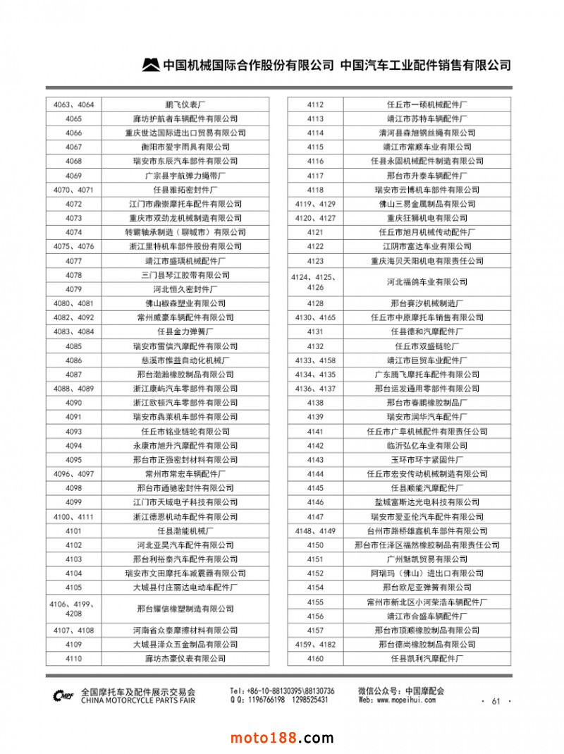 内61 第90届(2025秋)全国摩托车及配件展示交易会-广州站参展单位名录