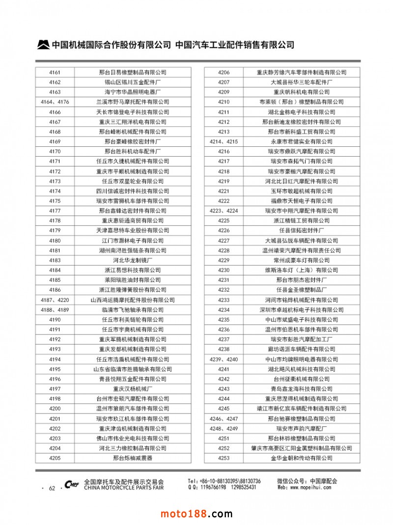 内62 第90届(2025秋)全国摩托车及配件展示交易会-广州站参展单位名录