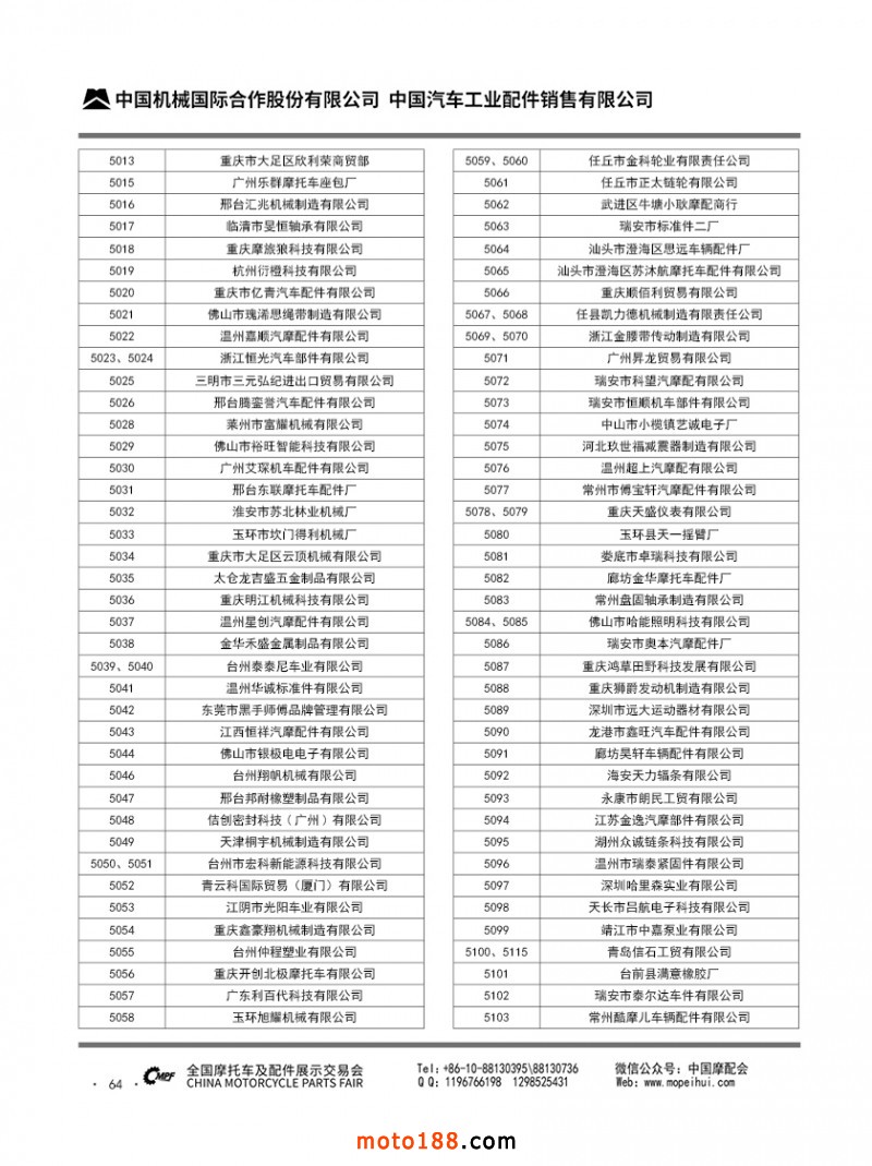 内64 第90届(2025秋)全国摩托车及配件展示交易会-广州站参展单位名录