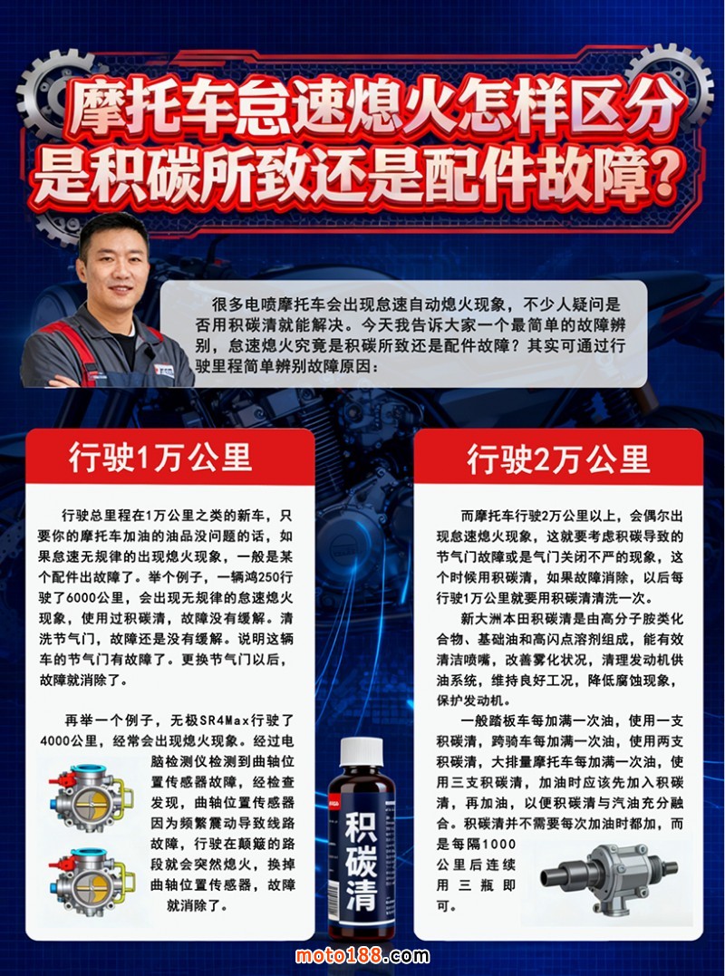 内20 摩托车怠速熄火怎样区分是积碳所致还是配件故障?