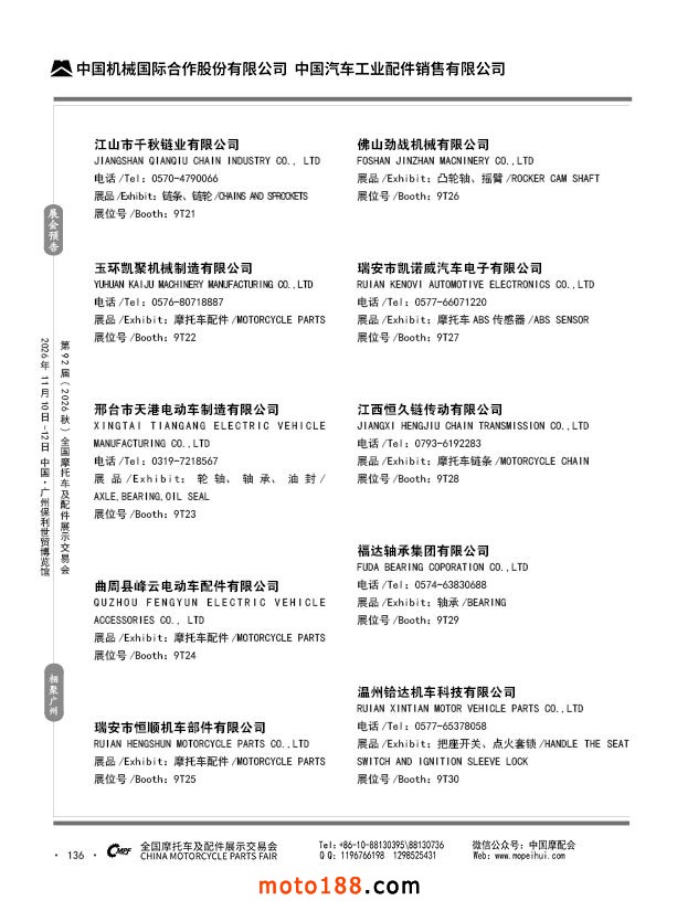 内136 第91届(2026春)全国摩托车及配件展示交易会-福州站参展企业信息