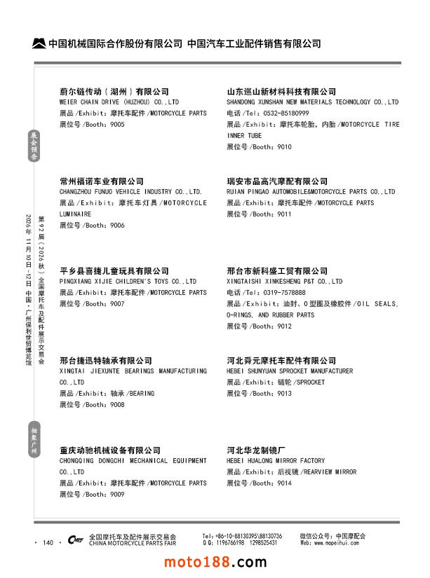 内140 第91届(2026春)全国摩托车及配件展示交易会-福州站参展企业信息