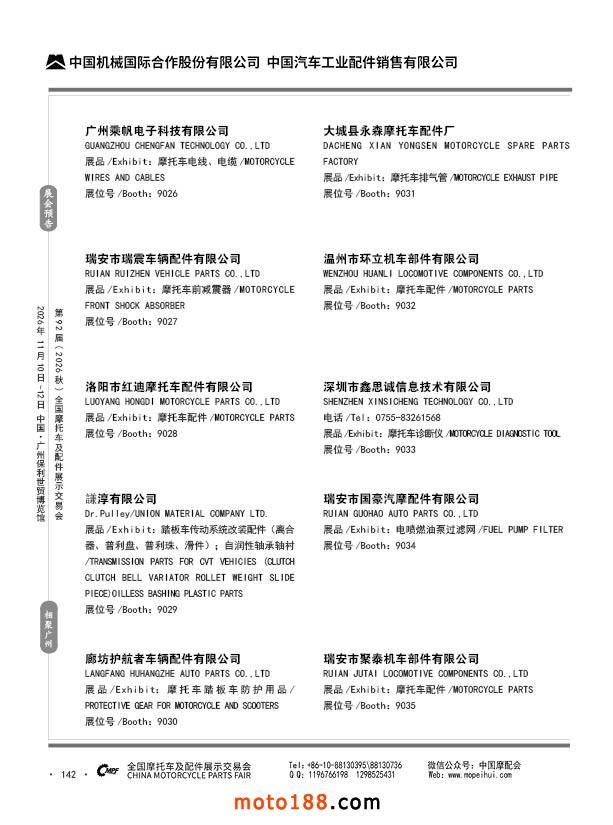 内142 第91届(2026春)全国摩托车及配件展示交易会-福州站参展企业信息