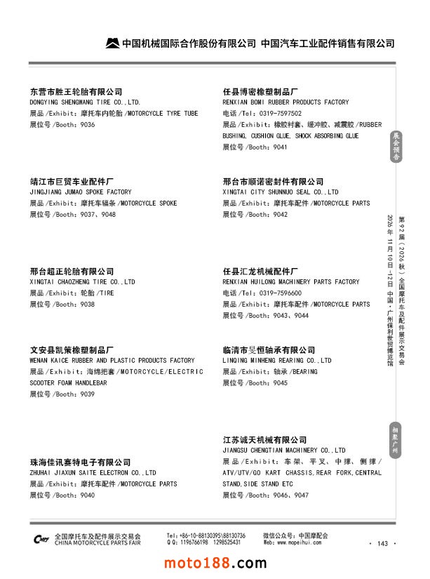 内143 第91届(2026春)全国摩托车及配件展示交易会-福州站参展企业信息