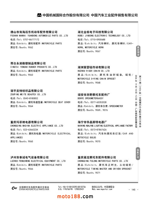 内145 第91届(2026春)全国摩托车及配件展示交易会-福州站参展企业信息